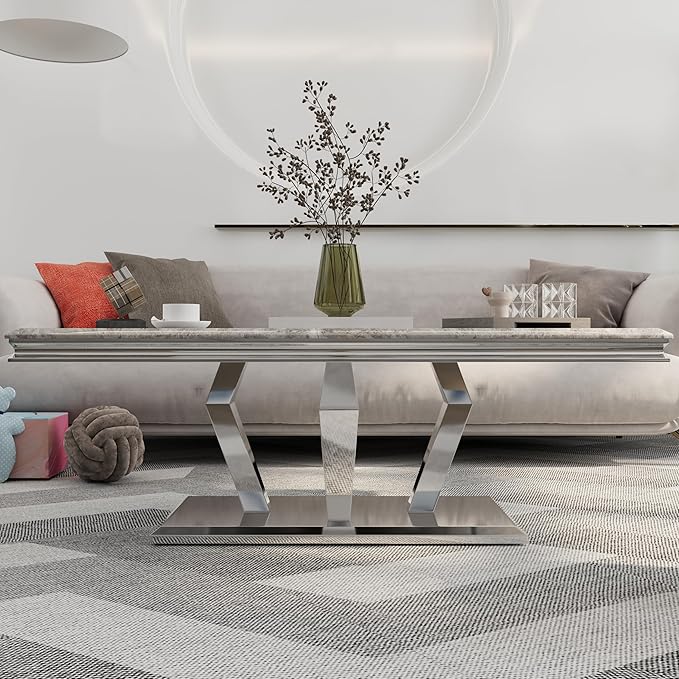 ACEDÉCOR Coffee Table, Silver Coffee Table with Four Geometric Mirror Bases, Rectangular CoffeeTable with Sturdy Metal Frame,48 inches Modern Coffee Table for Living Room, Office, Reception Room