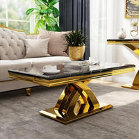 AUZ 48“ Black and Gold Coffee Table for Living Room, Guest Hall, Luxury Rectangle Center Table with Polished Metal Base