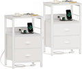 Furologee Nightstand Set of 2, Black Oak, with Charging Station and USB Ports, Side Tables with 2 Fabric Drawers, Bedside Tables with Storage Shelf & Hooks, for Living Room/Bedroom