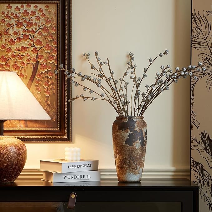 Smiletag Rustic Vase for Home Decor, Farmhouse Terracotta Vases, Stone Vases, Large Vases for Living Room Decor, Rustic Flower Vase Decoration for Living Room Tall Ceramic Vase Sale