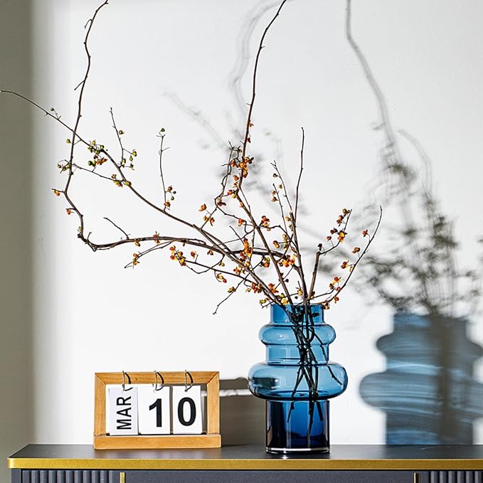 Clear Blue Bubble Glass Flower Vase, Modern Boho Ins Style Vase for Hydroponic Plants Bouquet, for Home Room Office Book Shelf Wedding Table Decor (W 6" X H 9.4")