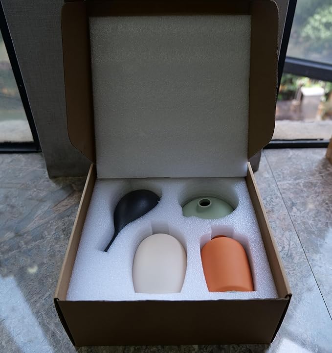Small Ceramic Vase Set of 4 for Modern Home Decor, Minimalist Bohemian, Round Matte Vases for Dried Flowers&Pampas Grass, Office, Shelf, Living Room, Bedroom, Entryway Decor