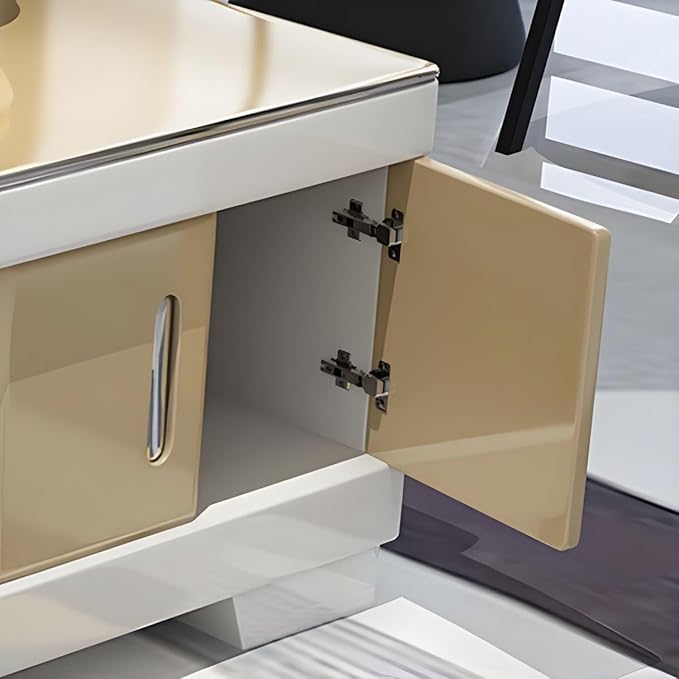 RUNNUPModern Rectangular Glass Coffee Table with White Wood Base and Storage 2-Tier Coffee Table Accent Center Sofa Table for Living Room, Black 51" L x 28" W x 16.5" H