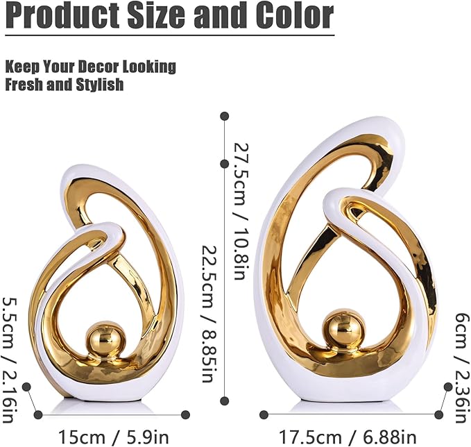 Home Decor Accent,Porcelain Art Mid Century Bookshelf Decorations,Gold Centerpieces for Tables,Abstract Ceramic Statue Sculpture for Coffee Table Mantel Tv Stand Centerpieces (White Gold, Large)