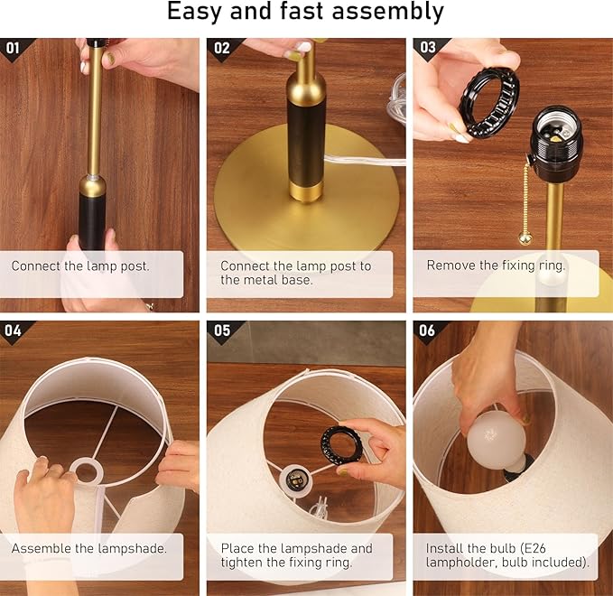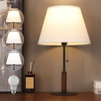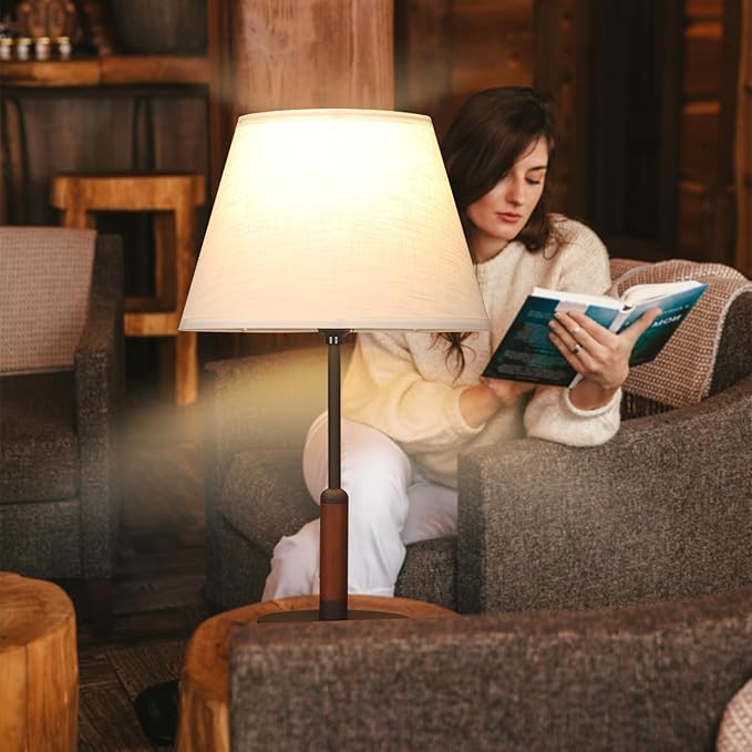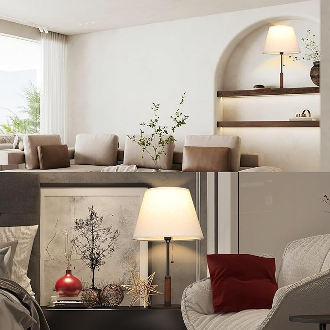 21" Table Lamps for Night Stands Bedside Lamp for Living Room Bedroom Lamp for End Tables 3-Color Pull Chain Switch Walnut Wood Fabric for Home/Office/Desk Decor (Off White+Sand Black)
