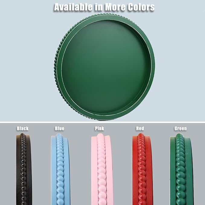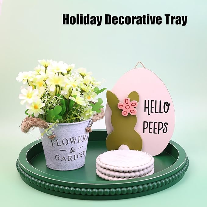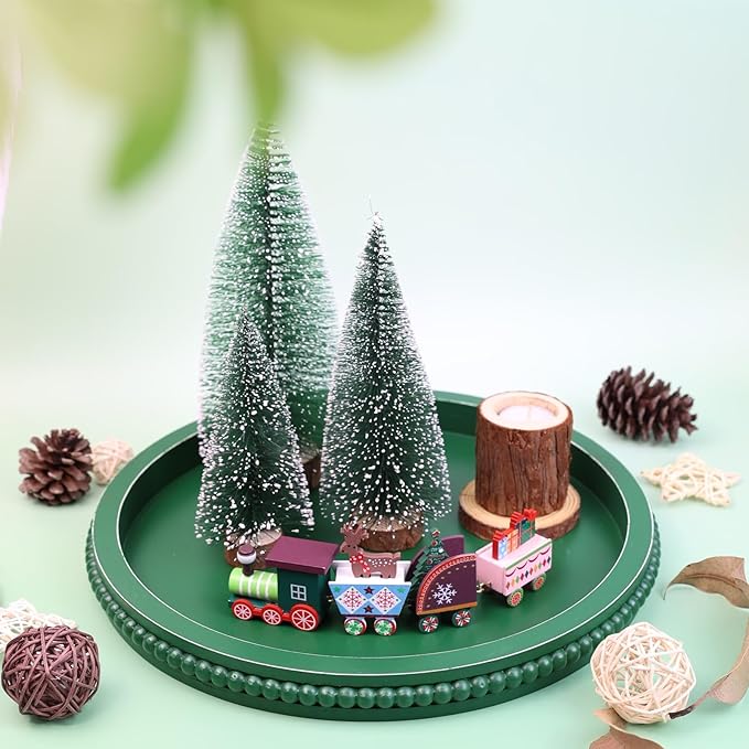 Green Round Wood Decorative Ottoman Tray for Coffee Table Kitchen Counter, Living Room, Handcrafted Green Wooden Serving Tray for Table Centerpiece