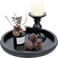 Black Round Wood Decorative Ottoman Tray for Coffee Table Kitchen Counter, Living Room, Handcrafted Wooden Serving Tray for Table Centerpiece