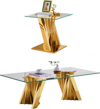 Glass 2 Piece Living Room Table Sets,2-Piece Table Set Includes Glass Coffee Table and End Tables with Stainless Steel Frame,Modern Coffee Table Set of 2 for Living Room