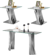 Glass 3 Piece Living Room Table Sets,3-Piece Table Set Includes 1 Console Coffee Table and 2 End Tables with Stainless Steel Frame,Modern Coffee Table Set of 3 for Living Room (Silver4)