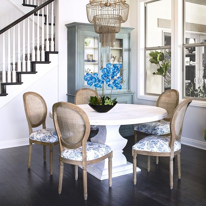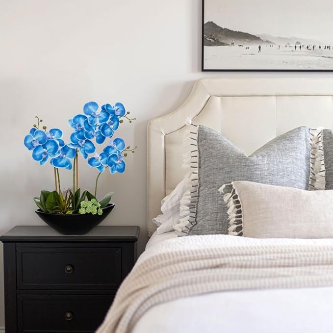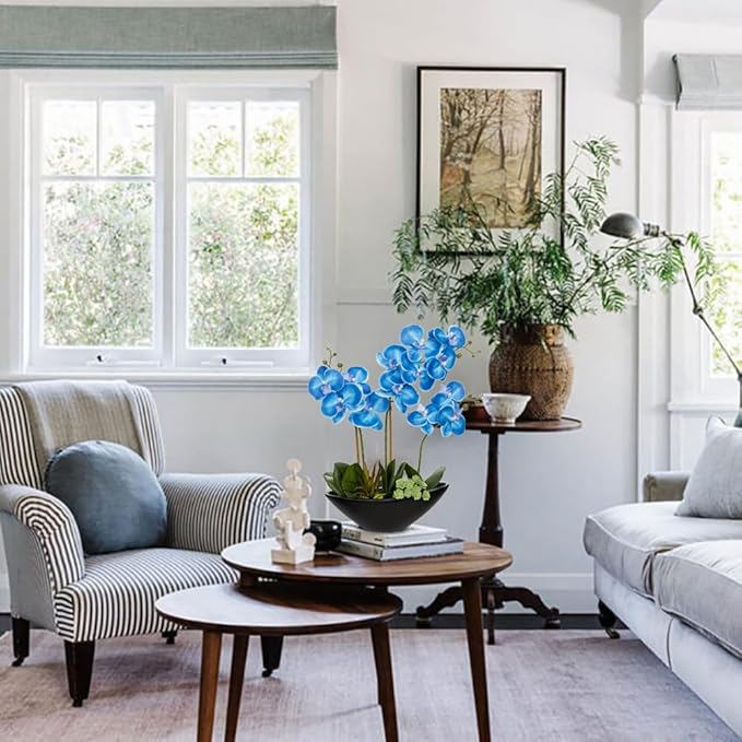 Briful Blue Orchid Fake Flowers 17in Artificial Orchid Silk Flowers in Black Pot Faux Orchid Arrangement for Home Office Bathroom Table Shelf Modern Decoration