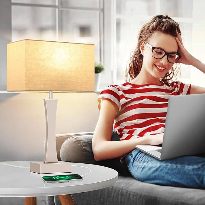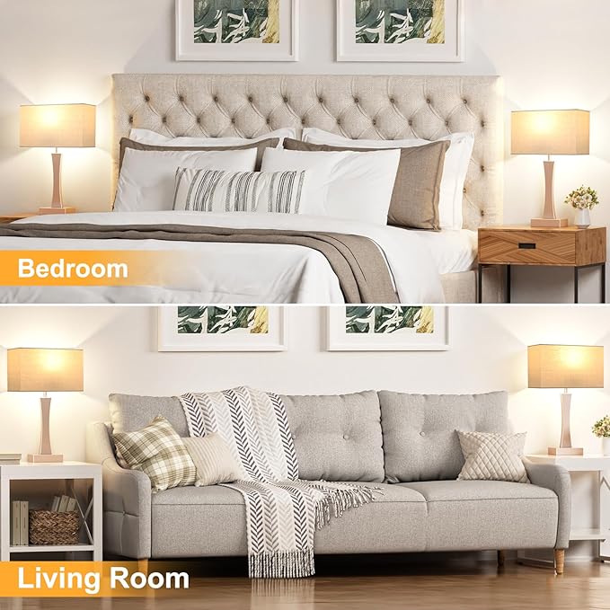 Bedside Lamps for Night Stands - 3 Way Dimmable Table Lamp for Bedroom with USB C+A Ports,Modern Bedside Lamps Set of 2, Touch Lamps for Nightstands(Mocha Gold)
