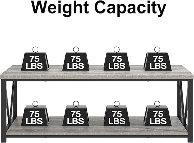FOLUBAN Coffee Table, Modern Rectangle Living Room Table with Storage Shelf, Rustic Wood and Metal Center Table, Light Grey, 47 Inch