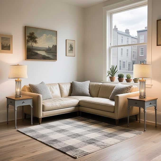 Farmhouse Table Lamps Set of 2 for Living Room, Vintage Bedroom Nightstand Lamp with Dual USB Ports, Bedside Lamp with Frosted Glass Nightlight for End Table Entryway, 4 Bulbs Included (Earthy Gray)