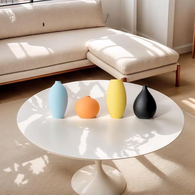 Small Ceramic Matte Vase Set 4 for Modern Home Decor Flower Decoration Office,Bookdesk, Bookshelf, centerpieces, Tables, Living Room, Dining Table, Bedroom Shelf Entryway Ornament Gift