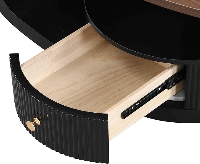 Marble Nesting Coffee Table Set of 2,Modern Oval Center Tea Table and Round Side Nightstand Set w/Drawer and Wood Tabletop and Metal Frame for Living Room Accent Furniture
