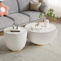 Round Coffee Table Set of 2, 2 Piece Luxury Cup Shape Leather End Tables Living Room Sets, Modern Circle Bedroom Side Tables Set of 2 with PU Leather Sofa Sets for Living Room Bedroom