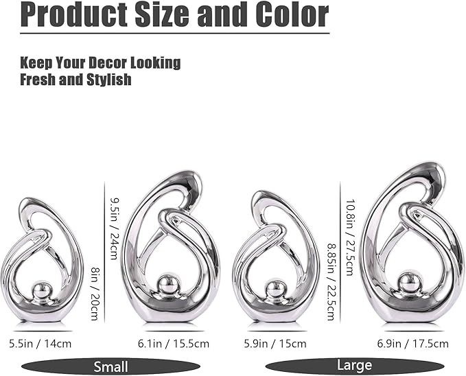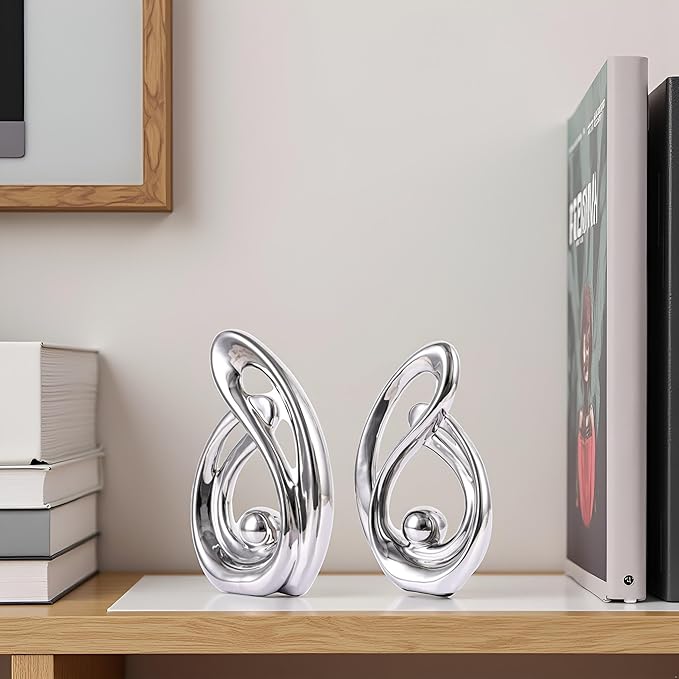 XMGZQ Home Decor Accent,Porcelain Art Mid Century Bookshelf Decorations,Gold Centerpieces for Tables,Abstract Ceramic Statue Sculpture for Coffee Table Mantel Tv Stand Centerpieces (Silver, Small)