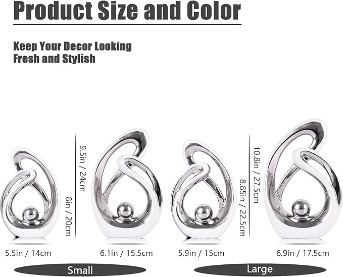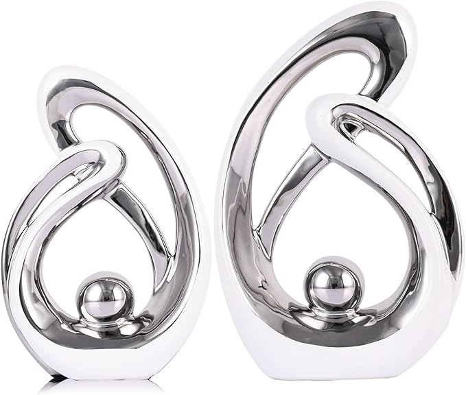 Home Decor Accent,Porcelain Art Mid Century Bookshelf Decorations,Gold Centerpieces for Tables,Abstract Ceramic Statue Sculpture for Coffee Table Mantel Tv Stand Centerpieces (White Silver, Small)