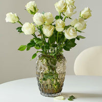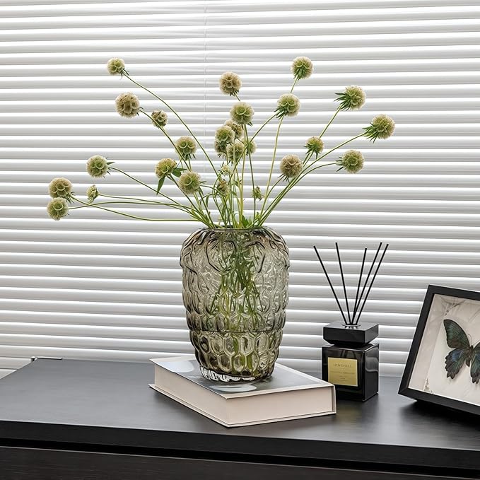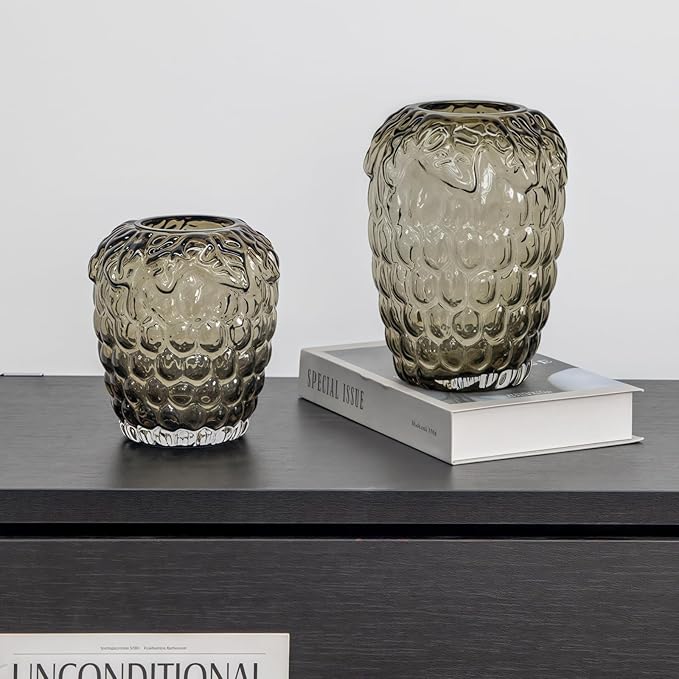 Grape Bubble Glass Vase for Flowers, Large Vintage and Clear Black Colored Smoke Glass Vases for Modern Home Decor (Crystal Grey 6.5" W X8.7 H)