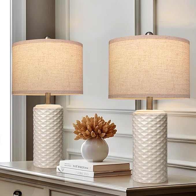 23" Bedside Lamps Set of 2, Dimmable Ceramic Table Lamps for Night Stands Modern Farmhouse Bedroom Lamps with Timer, Nightstand Table Lamps for Living Room End Table, Beige, LED Bulb Included