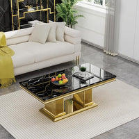 SSLine Rectangular Faux Marble Coffee Table for Living Room Modern Luxury Black Marble Center Table with Gold Pedestal Base 46.8" Mid-Century Cocktail Table with Mirrored Stainless Steel Frame