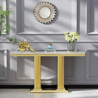 SSLine Modern White Faux Marble Console Table Luxury Entryway Table with Gold Pedestal Base 46.8" Mid-Century Elegant Sofa Table w/Mirrored Stainless Steel Frame for Living Room Hallway