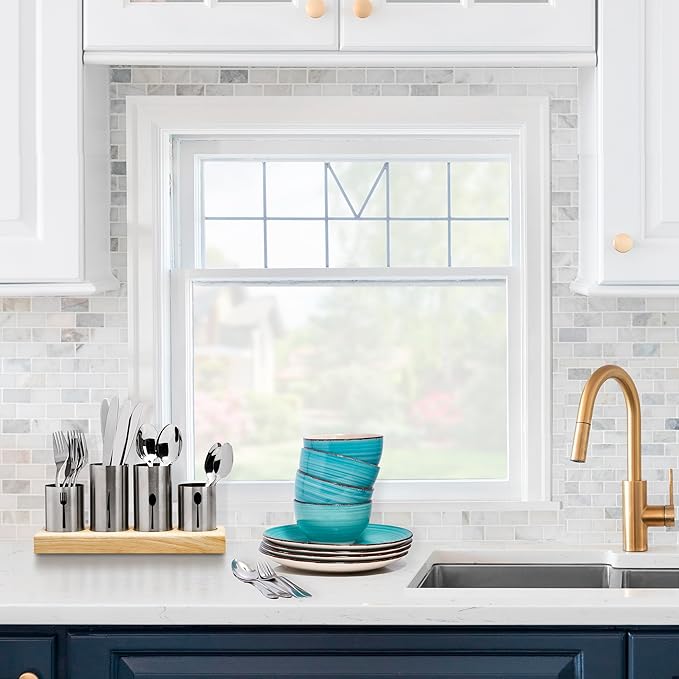 Sorbus Utensil Holder,Upright Silverware Holder with Caddy for Spoons, Knives and Forks, Entertaining,Stainless Steel Cutlery Organizer with Bamboo Wood Base