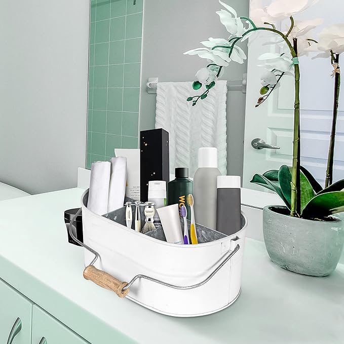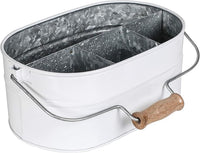Alpha Living Home Rustic Galvanized Heavy Duty Metal Utensil Caddy – 4-Compartment Organizer with Removable Handle, White Farmhouse Chic Design for Kitchen, Picnics & Parties (White)