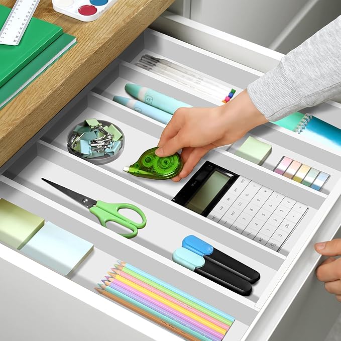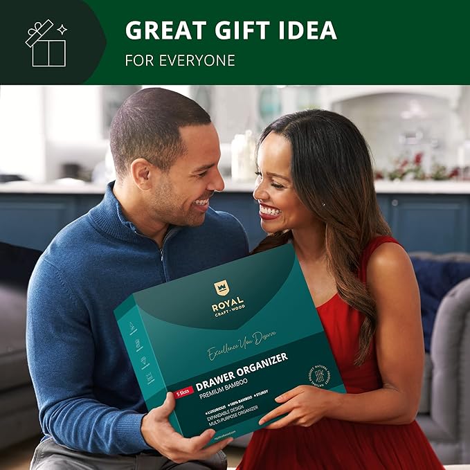 ROYAL CRAFT WOOD Luxury Bamboo Kitchen Drawer Organizer - Silverware Organizer - Utensil Holder and Cutlery Tray with Grooved Drawer Dividers for Flatware and Kitchen Utensils (5 Slot, White)