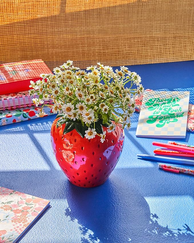 ban.do Vintage Inspired Strawberry Vase, Decorative Ceramic Vase, Large Flower Vase, Unique Strawberry Decor for Home/Kitchen/Office