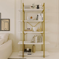 5 Tiers Bookshelf Organizer White Faux Marble Shelf,Modern Open Display Storage Bookcase, and Metal Bookshelf Standing Storage Shelf Tall Shelving Units for Home Office Study Sale