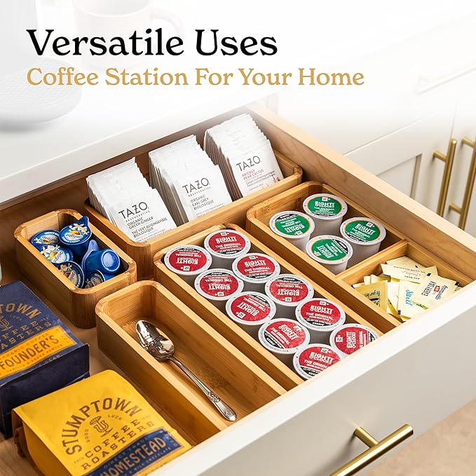 SMIRLY 5-Piece Bamboo Kitchen Drawer Organizer Set for Large and Small Utensils, Multi-use Storage Box - Bathroom, Nightstand, Jewelry, Cutlery, Knife, Spice, Towel, Junk Drawer Tray