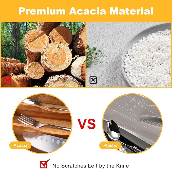 Kitchen Acacia Silverware Organizer - Extra Deep Grooved Drawer Divider, 7 Slot Utensil Organizer