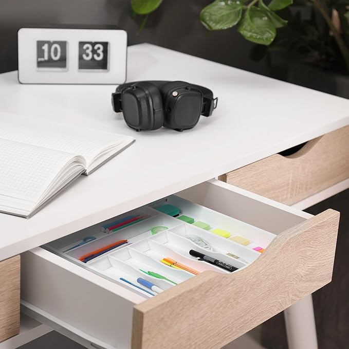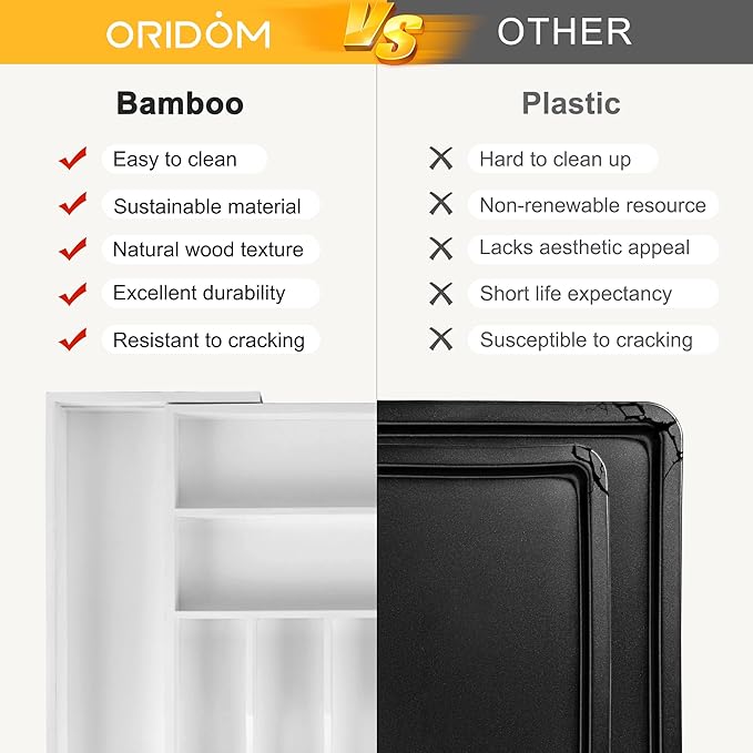 Large Premium Bamboo Silverware Organizer - Expandable Drawer Organizer & Utensil Organizer - 17"x19.7" Cutlery Tray with Dividers for Kitchen Utensils and Flatware (7-9 Slots) (White)