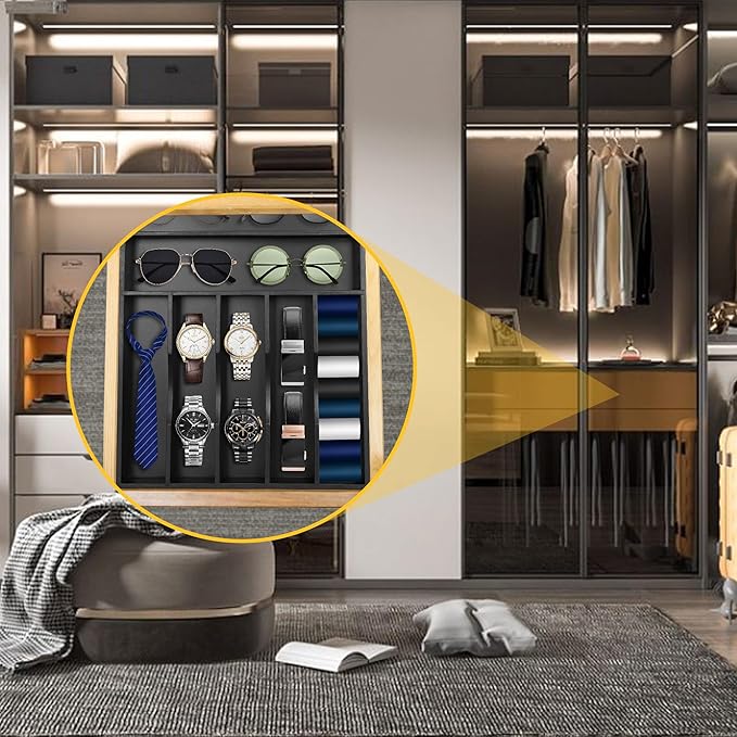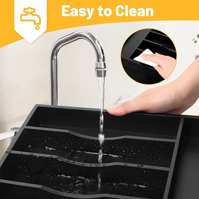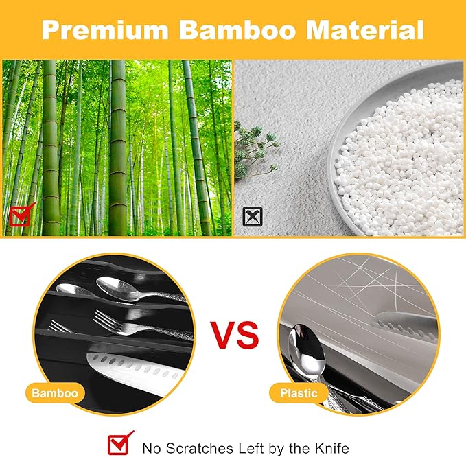Kitchen Bamboo Silverware Organizer, Kitchen Drawer Organizer - Utensil Holder and Cutlery Tray with Grooved Drawer Dividers for Flatware 7 Slot, Black