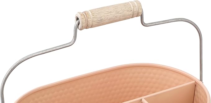 Alpha Living Home Heavu Duty Metal Utensil Caddy – 4-Compartment Silverware, Flatware, Cutlery Holder with Handle – Kitchen Organizer for Countertop, Buffet, Picnic, BBQ, Farmhouse(Peach)