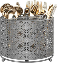 Rotating Utensil Caddy Countertop - Higher Raised Cutlery Caddy Holder - Metal Silverware Caddy Organizer with 4 Compartment for Kitchen Counter Party Office Silver