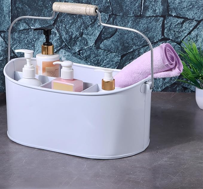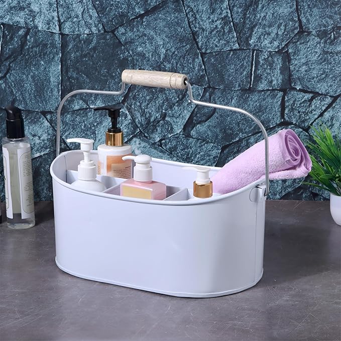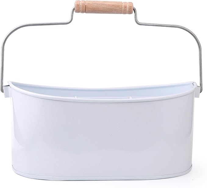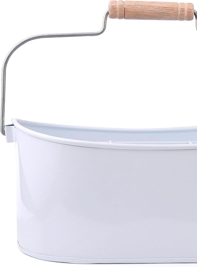 Alpha Living Home Farmhouse 4-Section Galvanized Utensil Caddy - Versatile Organizer for Kitchen, Party & Outdoor Events (Snow White) - Rustic Silverware Holder, Cutlery Organizer, Picnic (White)