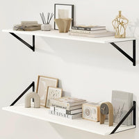 Fun Memories Deep Floating Shelves for Wall, 36W x 8D Wall Mounted Shelves Set of 2, Wide Display Ledge Shelf with Sturdy Metal Brackets for Living Room, Bathroom, Bedroom and Kitchen, White