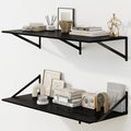 Fun Memories Deep Floating Shelves for Wall, 36W x 8D Wall Mounted Shelves Set of 2, Wide Display Ledge Shelf with Sturdy Metal Brackets for Living Room, Bathroom, Bedroom and Kitchen, Rustic Brown