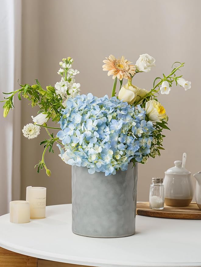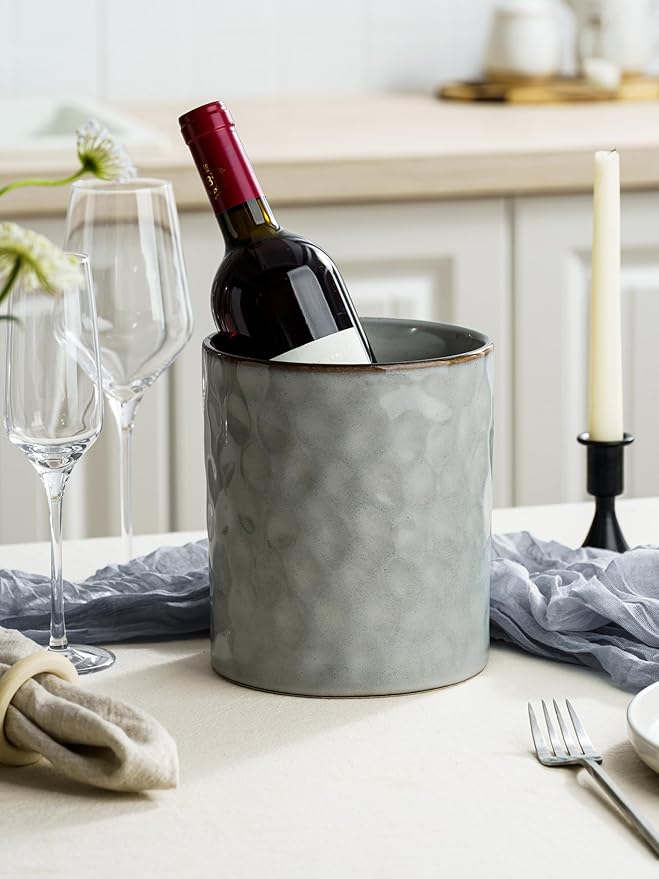 famiware Ocean Utensil Holder, 7.2"+5.8" Ceramic Kitchen Utensil Holder for Countertop, 2 Pieces Cooking Utensil Crocks, Utensil Organizer for Spatula & Spoon, Kitchen Decor, Set of 2, Gray