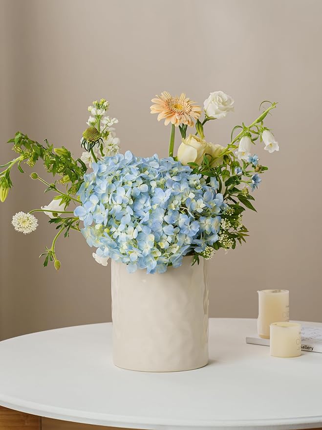 famiware Ocean Utensil Holder, 7.2"+5.8" Ceramic Kitchen Utensil Holder for Countertop, Cooking Utensil Crocks, Utensil Organizer for Spatula & Spoon, Kitchen Decor, Set of 2, Vanilla White