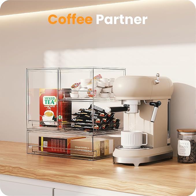 A-LuGei 【𝟮𝗣𝗖𝗦】 Acrylic Stackable Storage Drawers, 8.7" H Makeup Organizer, Bathroom Organizer and Storage, Plastic Storage Bins for Kitchen Cabinet Pantry Medicine Fridge