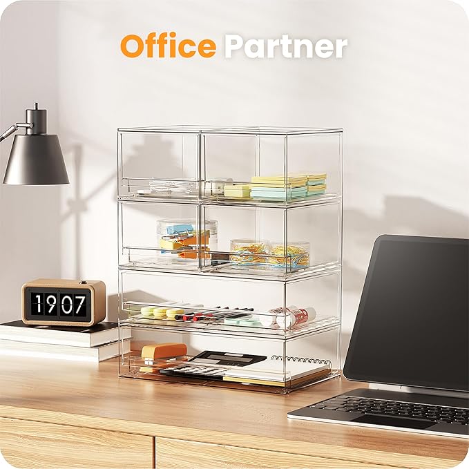A-LuGei 【𝟮𝗣𝗖𝗦】 Acrylic Stackable Storage Drawers, 11.8" W Makeup Organizer, Bathroom Organizer and Storage, Plastic Storage Bins for Kitchen Cabinet Pantry Medicine Fridge