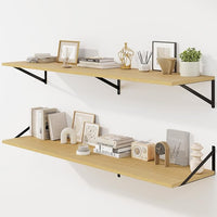 Fun Memories Floating Shelves for Wall, 12 Inch Deep Floating Shelves Set of 2, 55W x 12D Large Wall Shelf with Sturdy Metal Brackets for Living Room, Bathroom, Bedroom and Kitchen, Oak