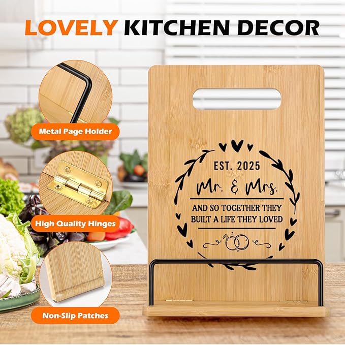 Mr and Mrs Wedding Gifts for Couples 2025, Wedding Gifts for Bride and Groom Cookbook Stand, Gifts for Bridal Shower Engagement Wedding, Mr and Mrs Gifts for Couples Newlyweds Bride to Be