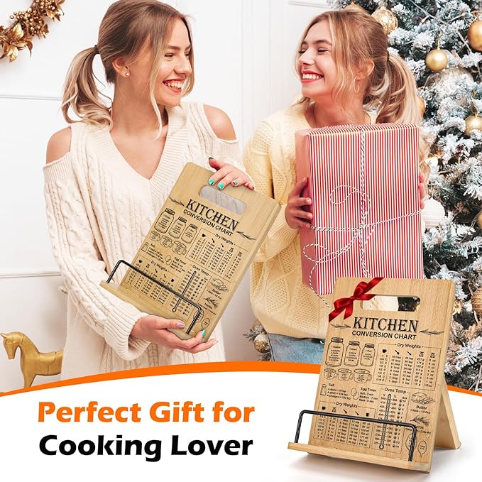 Bamboo Cookbook Stand for Kitchen Counter, Recipe Book Holder with Measurement Conversion Chart, Adjustable Cookbook Holder, Essential Accessories for Holding Cookbooks