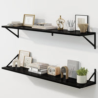 Fun Memories Deep Floating Shelves for Wall, 48W x 8D Wall Mounted Shelves Set of 2, Wide Display Ledge Shelf with Sturdy Metal Brackets for Living Room, Bathroom, Bedroom and Kitchen, Black