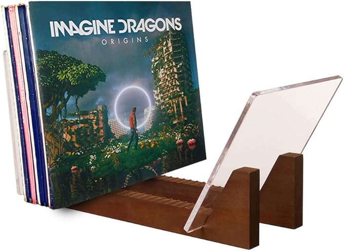KAIU Vinyl Record Storage Holder - Solid Wood with Crystal Clear Acrylic Holder - Premium Design, Perfect 12" LPs or 7" Singles Display Unit - Stores and Supports up to 50 Albums (Vintage Brown)