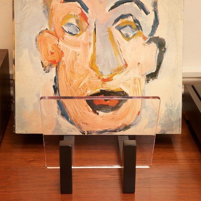 KAIU Vinyl Record Storage - Solid Wood with Crystal Clear Acrylic Holder - Premium Design, Perfect 12" LPs or 7" Singles Display Unit - Stores and Supports up to 50 Albums (Modern Black)